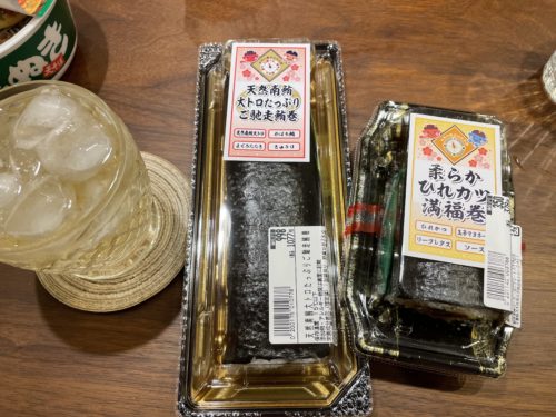 節分の日に恵方巻を買って帰りました。 息子は生ものがまだ食べれないのでお肉の恵方巻があって良かったです。 一瞬…