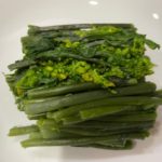 お客様に頂いた菜の花そっくりの紅菜苔。 赤紫色の茎でしたが茹でると緑色に変わりました。 からし和えにして、美味…