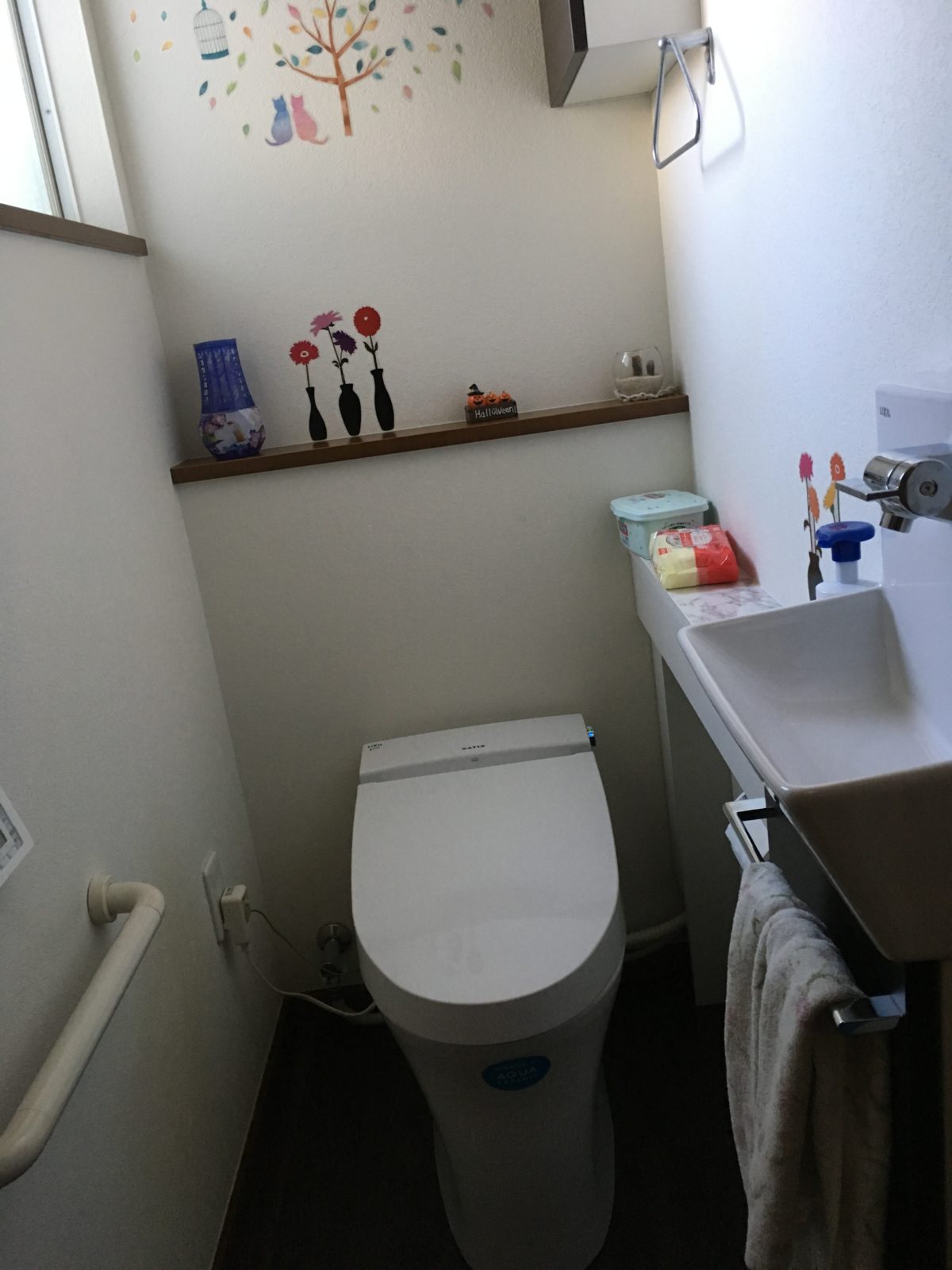 特に1階は使う頻度が高い為、タンクレストイレへの変更と、収納と手洗いを設置して掃除がしやすくて収納力をアップしました。